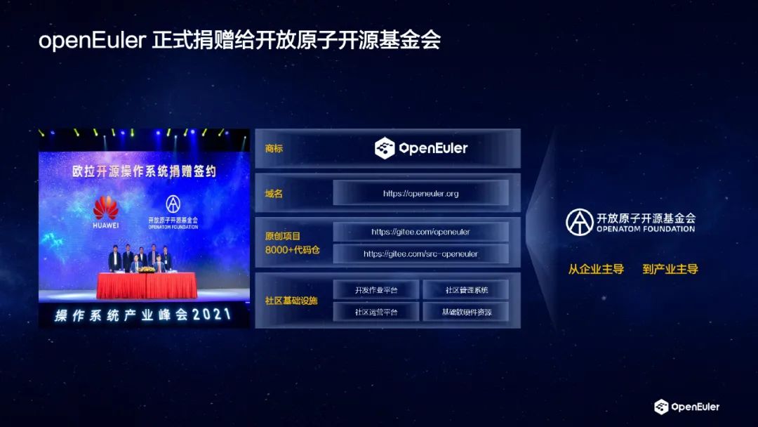 2021 年 11 月,openEuler (以下简称“欧拉”)开源操作系统正式捐赠给开放原子开源基金会。同期,由开放原子开源基金会指导,欧拉开源社区主办的 openEuler Summit 2021 圆满召开。