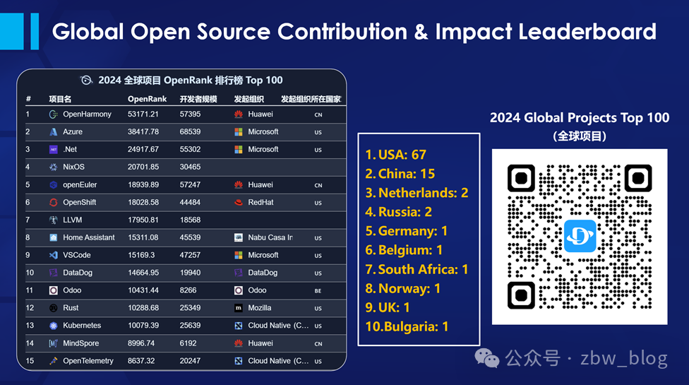 尽管中国在开源领域取得了一定进展,但核心技术和关键项目的自主创新能力仍显薄弱。许多开源项目的核心技术和话语权主要掌握在国外科技巨头手中,导致国内企业在技术创新和应用中受制于人。根据x-lab发布的最新报告,全球开源项目TOP100中,中国的开源项目只有15个,大约是美国开源项目数量的1/5强一点。目前国内一些头部企业正在努力打造的根技术社区,可以算作是一种积极的应对之道。