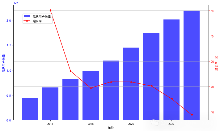 图3:GitHub 年度活跃用户数量趋势 (来源:《2023中国开源年度报告》)