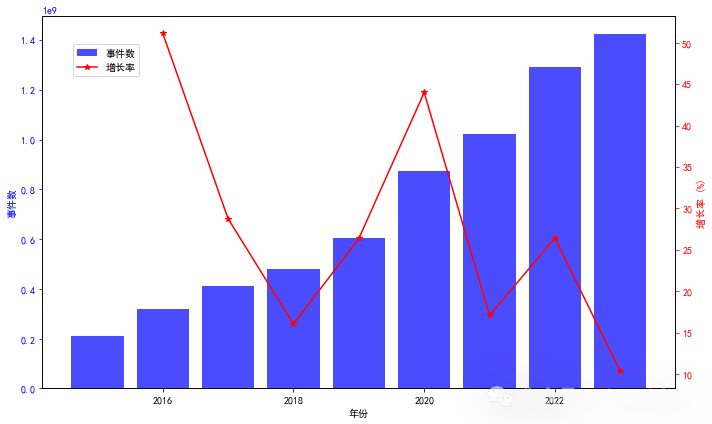 图2:GitHub 年度事件数趋势 (来源:《2023中国开源年度报告》)