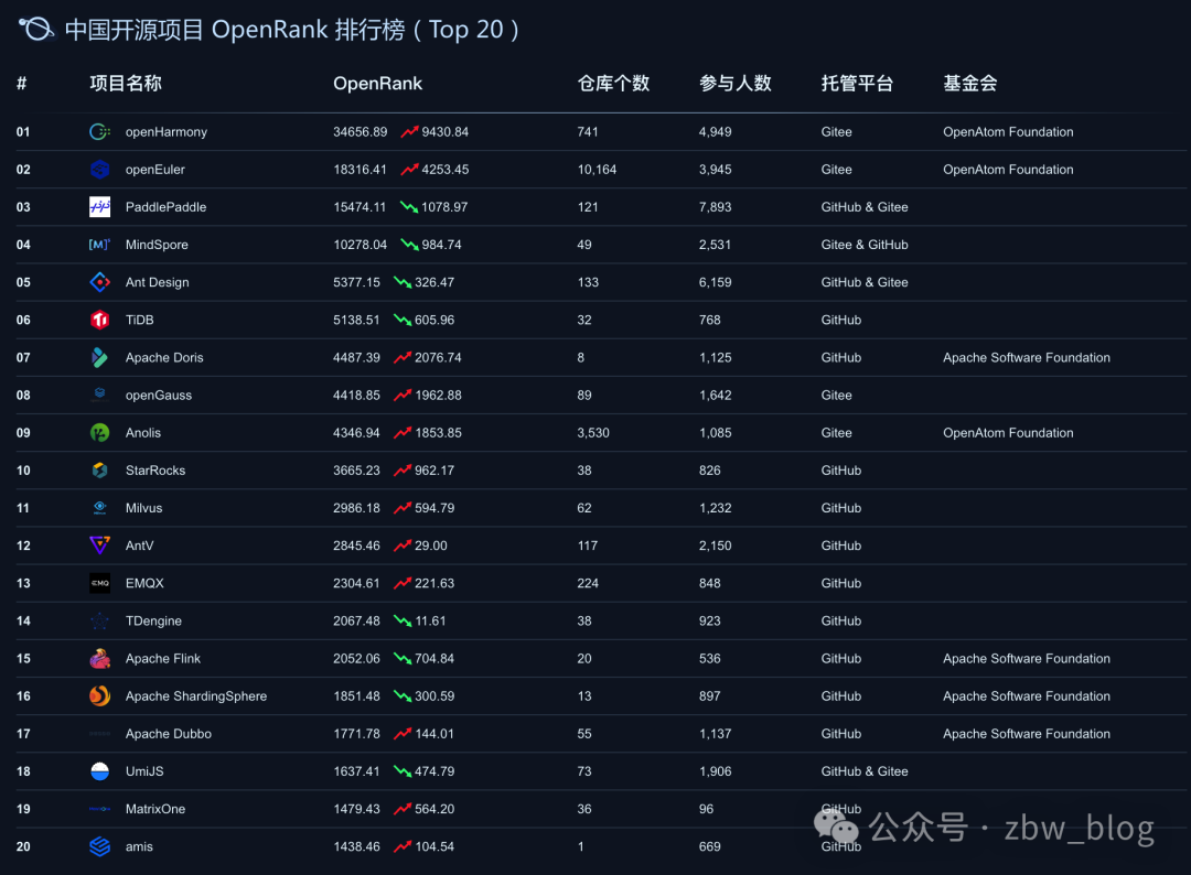 图4:中国开源项目 OpenRank 排名(来源:《2023中国开源年度报告》)
