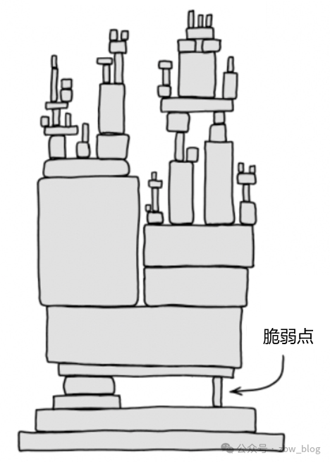 关于安全机制,有一幅著名的漫画,就是在将复杂架构中,总是会存在的脆弱点。而一个开源软件,如果存在这样的脆弱点,一旦安全风险爆发,就会给用户,当然也会给项目自身带来巨大的灾难。著名的OpenSSL心脏滴血漏洞,就是这样的案例。