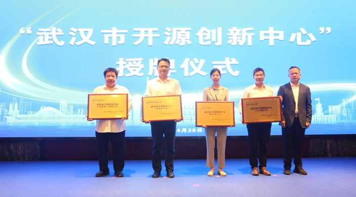 在市经济和信息化局指导下,华中科技大学、武汉大学、湖北大学、江汉大学四所高校分别聚焦开源安全、软件工程、开源评价与大数据、人工智能方向,建设 “武汉市开源创新中心”。市经济和信息化局局长李世涛为四所高校授牌,这一举措将有力推动高校科研成果转化,促进产学研深度融合,为武汉构建完备的开源创新体系提供支撑。